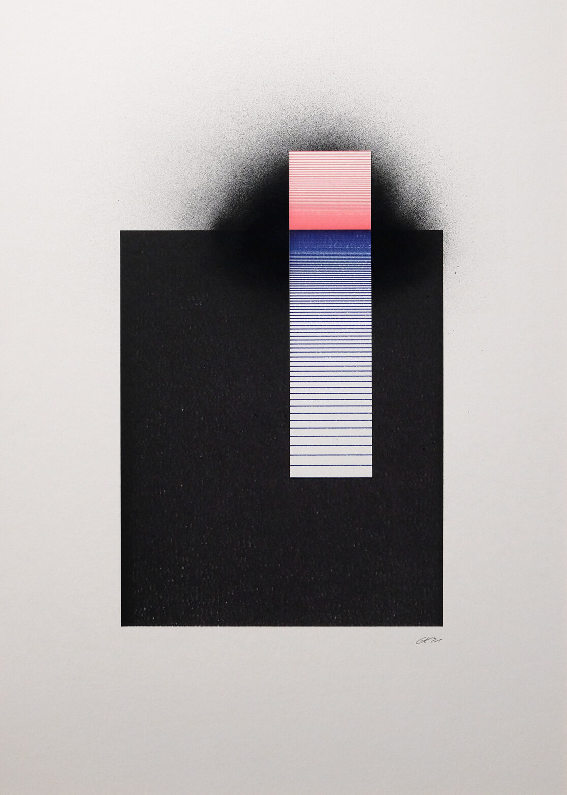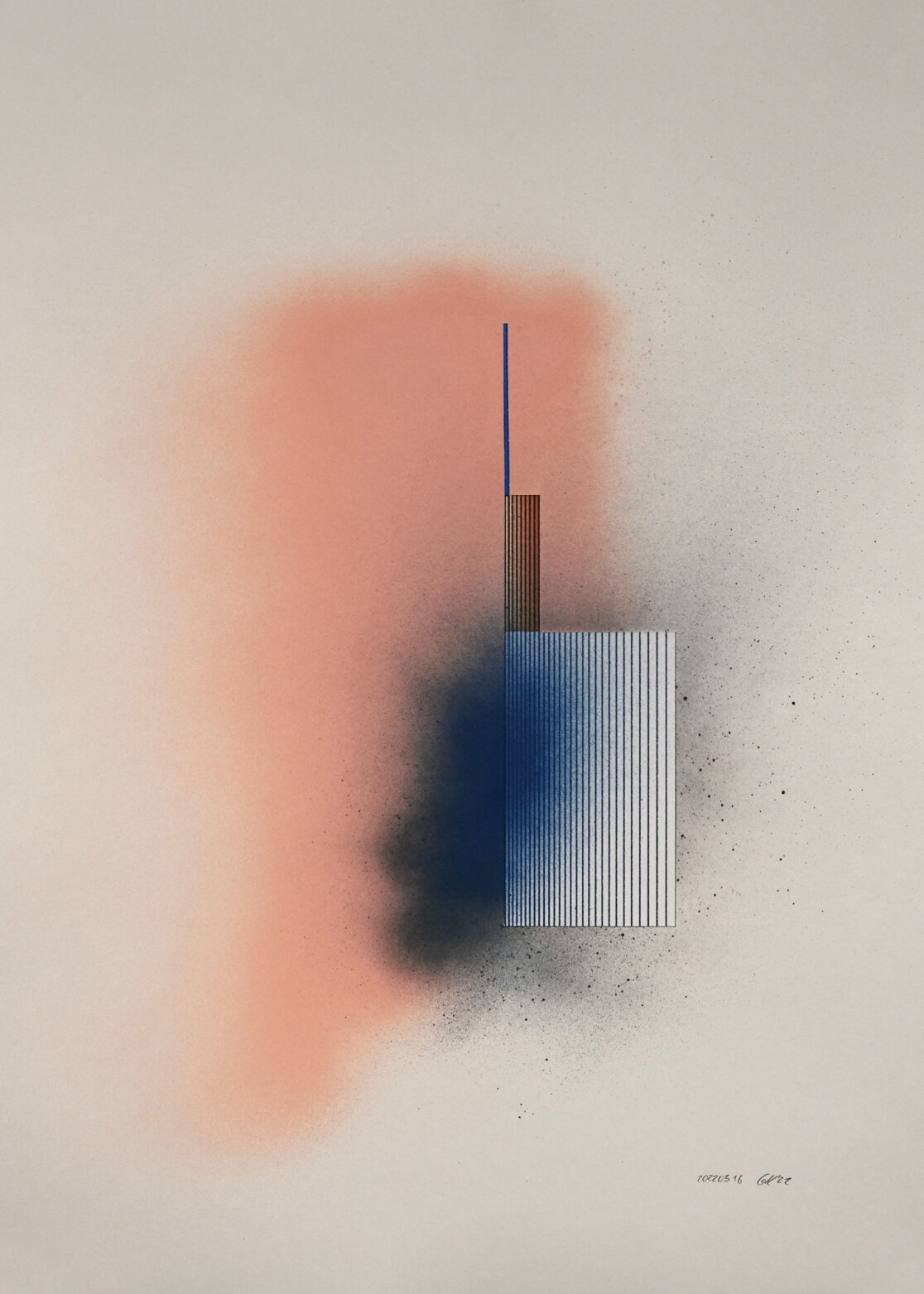 Acrylic spray paint, pigmented ink pens on paper, 50×70 cm