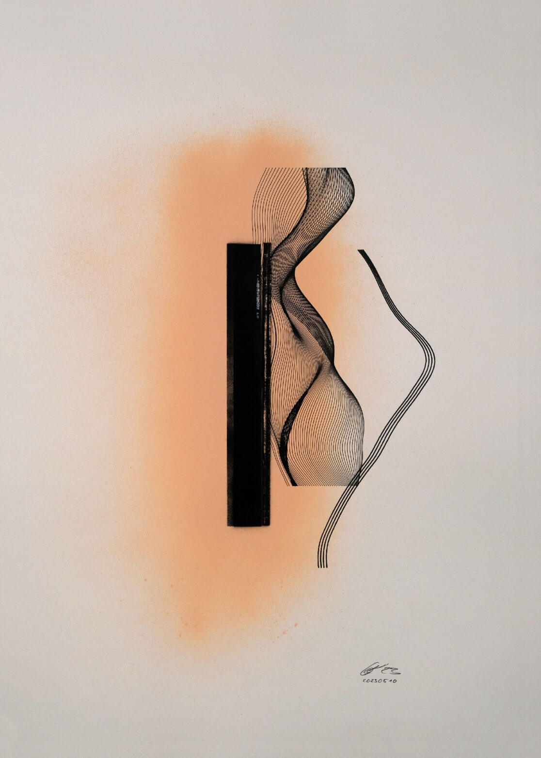 pigment ink pens, Acrylic spray paint on paper,collage.50x70 cm