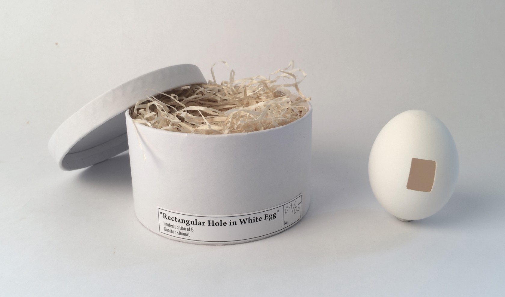 Objekt-Serie “Rectangular Hole in White Egg” Limitierte Auflage von 5 Stück. Weitere Ausführungen folgen…