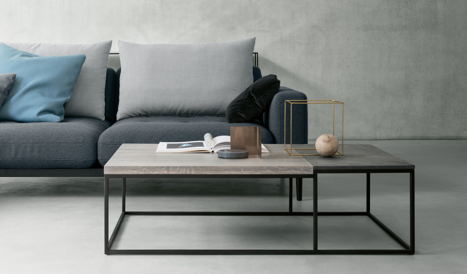 Gestaltung und Entwicklung der Couchtisch Serie 985 für die Firma Rolf Benz. Erstmalig präsentiert auf dem Salone del Mobile 2015 in Mailand. Materialien: Stahl, Holz, Stein