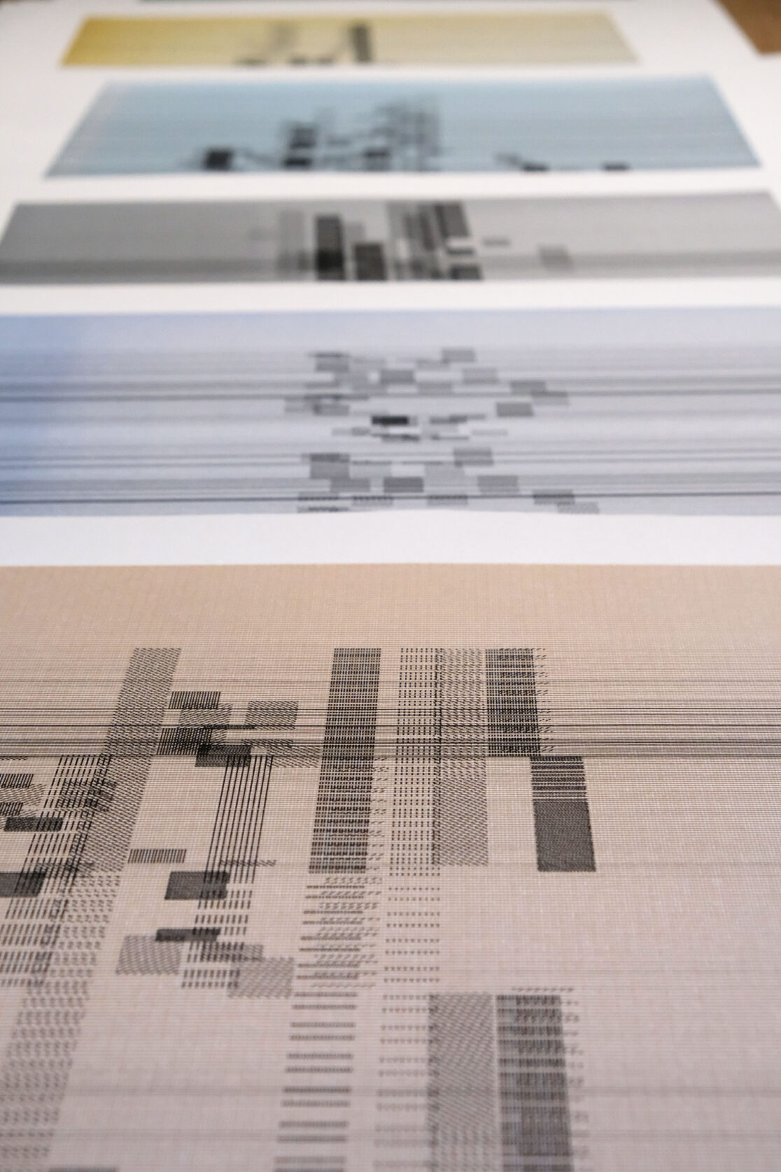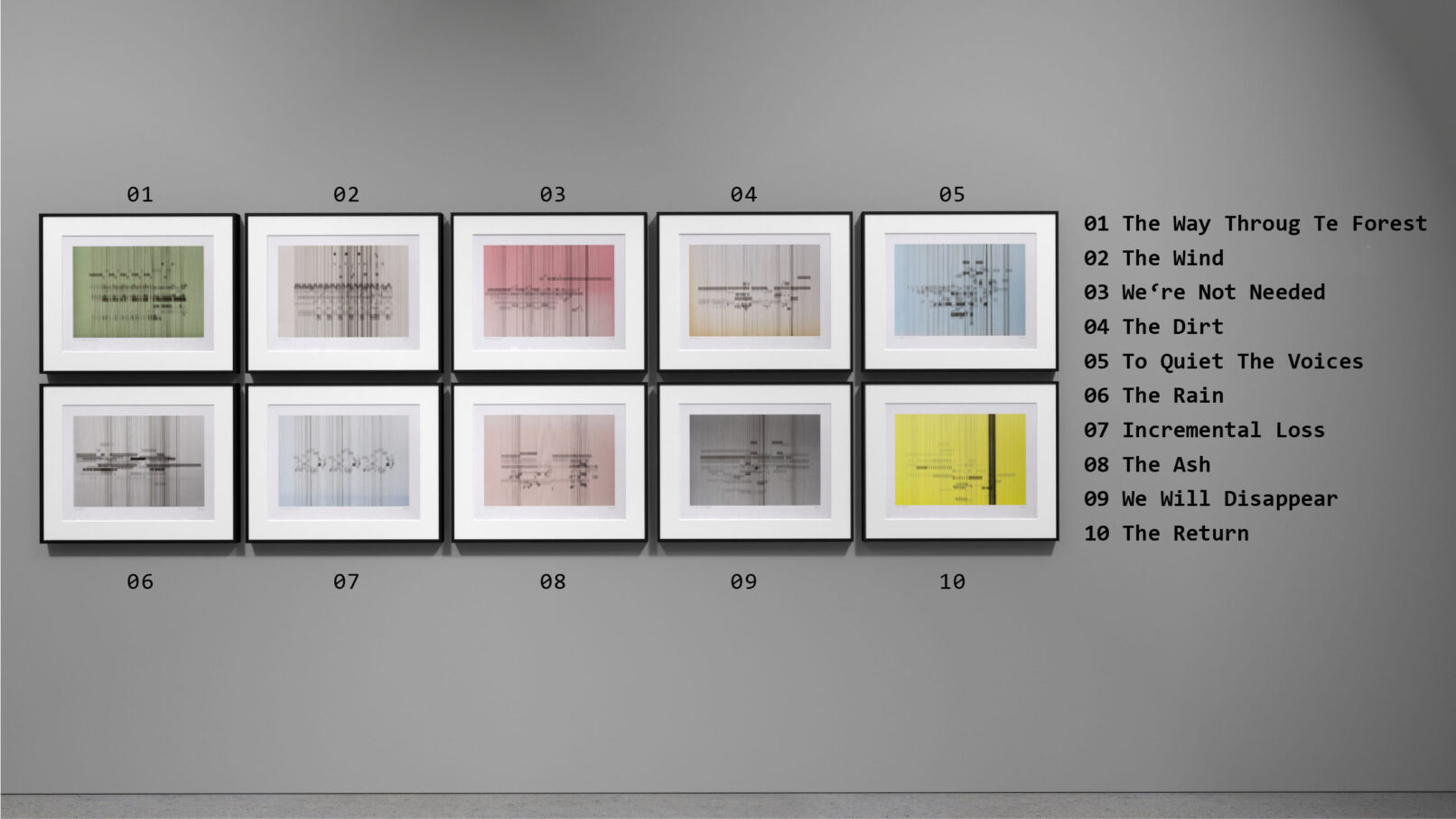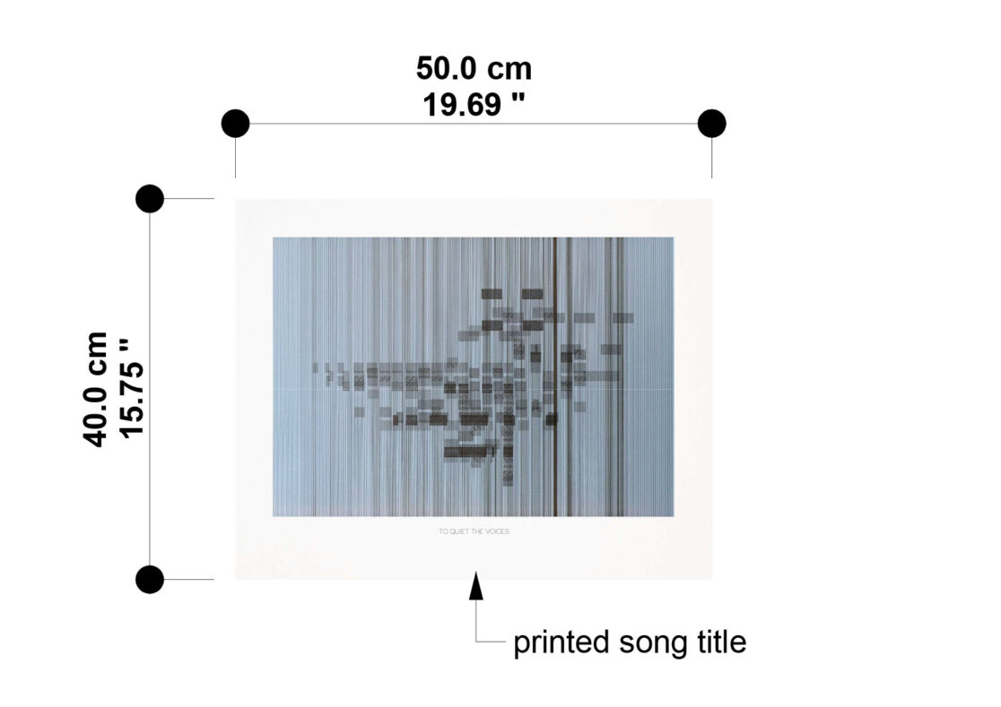 As my general approach for my artworks also incorporates a digital to analog process, I used various digital information and paramters of the music to create these art pieces.